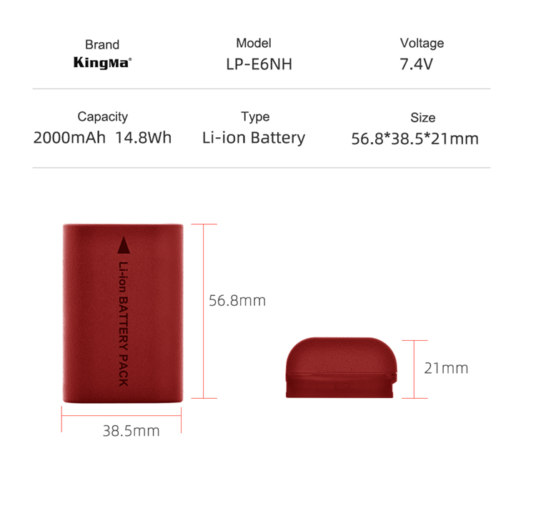 KingMa 2000mAh LP-E6NH Battery for Canon EOS R5, R6, R6M2, R7, R, Ra, 6D Mark II, 7D Mark II, 90D Cameras