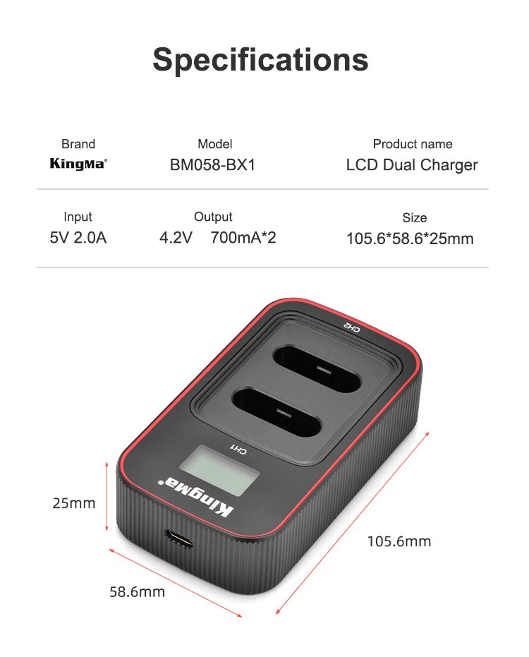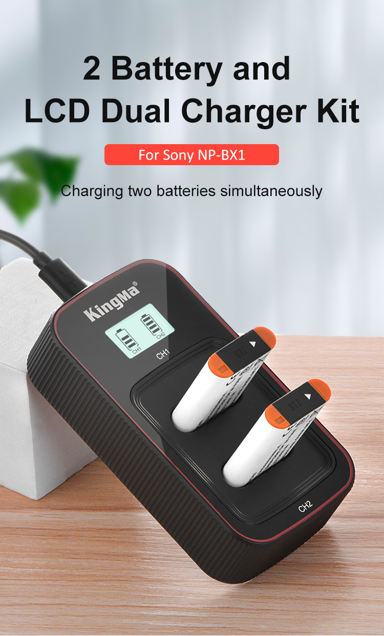 KingMa NP-BX1 2-Pack Battery and LCD Dual Charger Kit