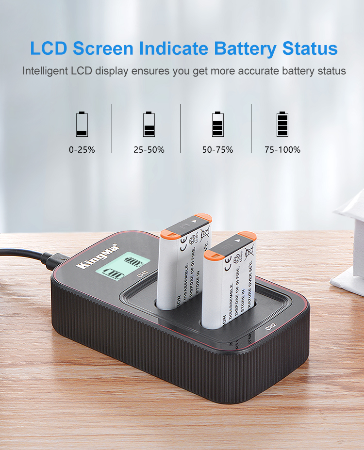 KingMa NP-BX1 2-Paket Bateri dan Kit Pengecas Dual LCD